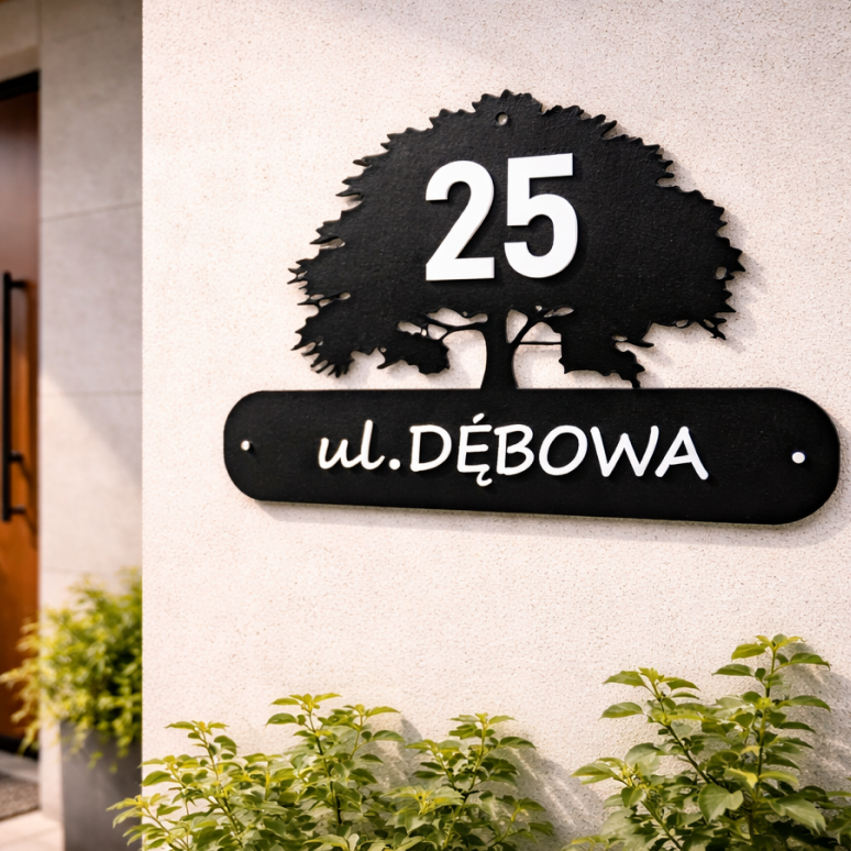 Tabliczka numer domu metalowa drzewo