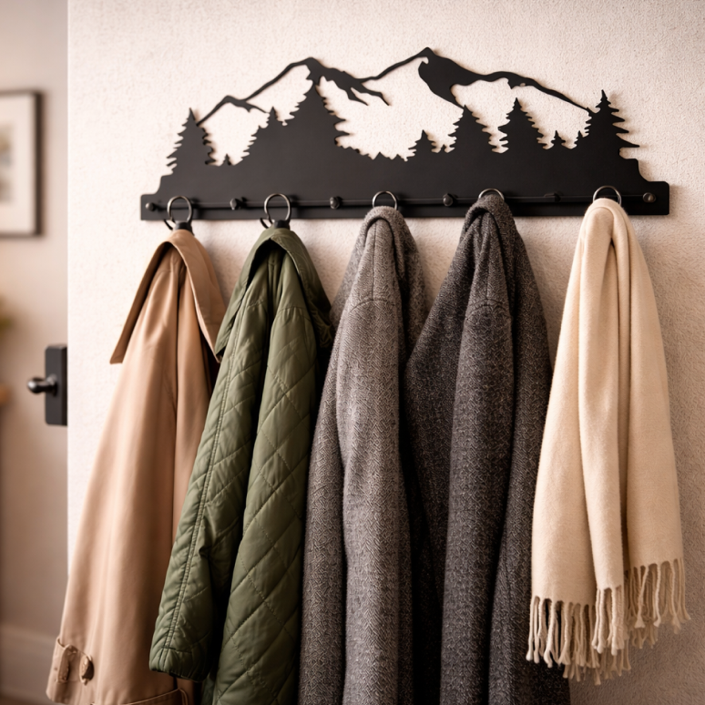 Wieszak prezentuje się świetnie! Solidne, metalowe wykonanie i nowoczesny design. Idealnie pasuje do przedpokoju — wygląda stylowo, a przy tym jest bardzo praktyczny i wytrzymały. Utrzymuje cięższe płaszcze bez problemu. Montaż szybki i prosty.