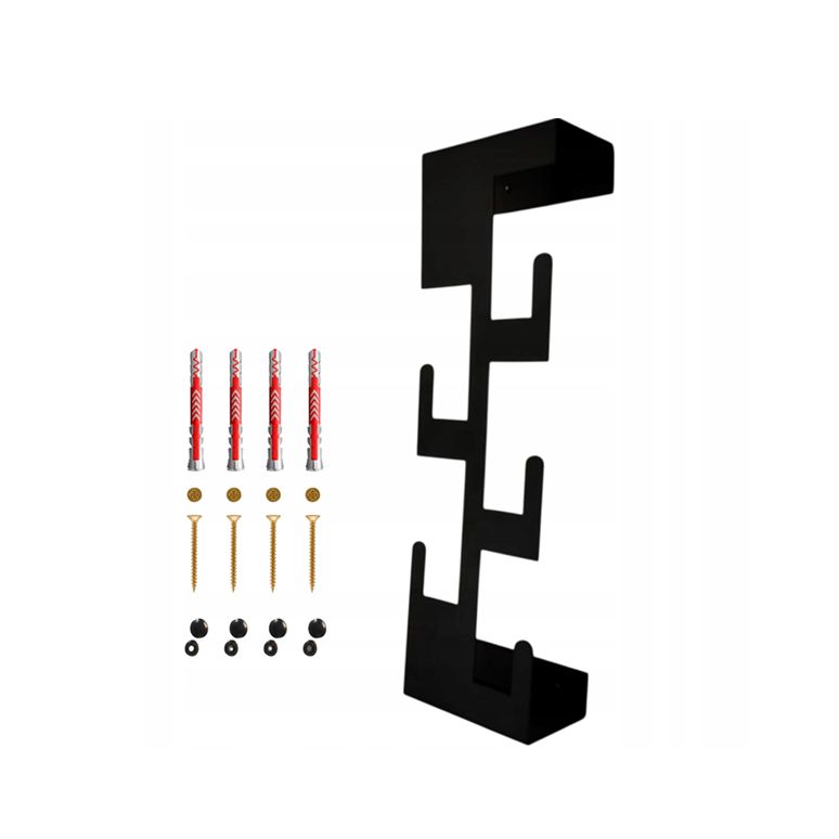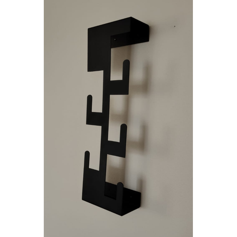 Metalowy wieszak ścienny z kilkoma haczykami, idealny do zawieszania medali, kluczy lub drobnych akcesoriów. Minimalistyczny, nowoczesny design w czarnym kolorze. Solidna konstrukcja oraz zestaw montażowy w komplecie zapewniają łatwy montaż i trwałość użytkowania.